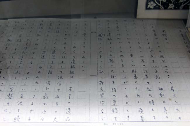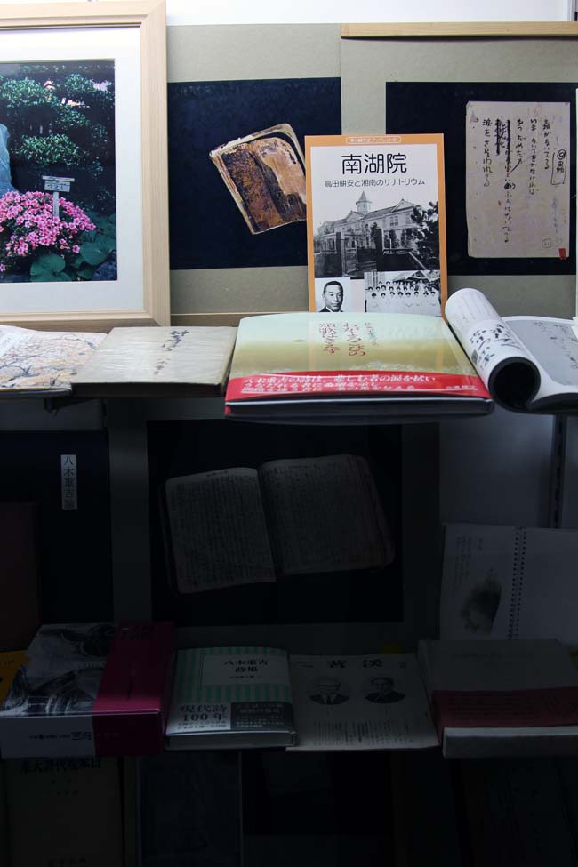 敷地内の土蔵を改修し、詩稿と絵画、写真と重吉の子、桃子と陽二の書も展示しています。